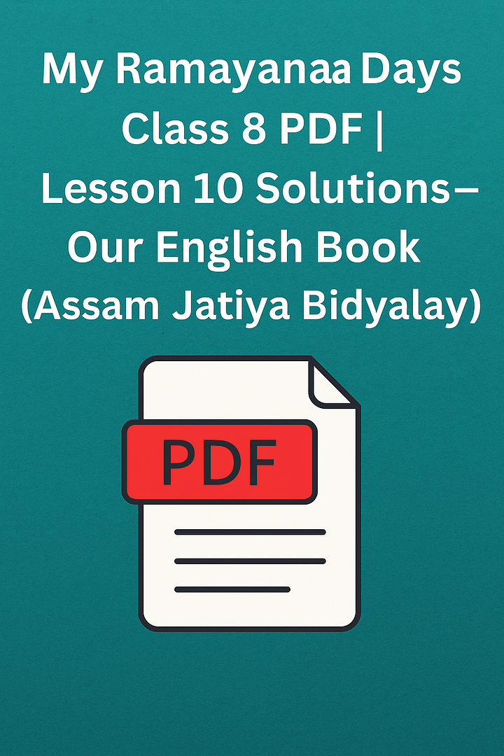 Get the complete My Ramayana Days Class 8 PDF (Lesson 10) from Our English Book of Assam Jatiya Bidyalay Trust. This digital PDF contains: